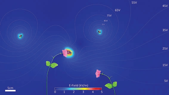 แบบจำลองไฟไนต์เอลิเมนต์ของปฏิสัมพันธ์ทางไฟฟ้าระหว่างผึ้งกับดอกพิทูเนีย