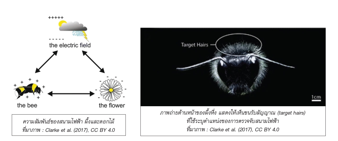 ผึ้งกับพืชดอกมีประวัติวิวัฒนาการ (evolution) ร่วมกันมาอย่างยาวนาน โดยต่างก็พัฒนาลักษณะเฉพาะตัวที่เอื้อต่อกระบวนการผสมเกสร ซึ่งเป็นกระบวนการสำคัญยิ่งทั้งสำหรับการสืบพันธุ์ของพืชและการเป็นแหล่งอาหารของแมลงผสมเกสร การที่ผึ้งจะค้นหาและเลือกดอกไม้ที่เหมาะสมได้ จำเป็นต้องพึ่งพาประสาทสัมผัสหลายส่วนร่วมกัน ไม่ว่าจะเป็นการมองเห็น การรับกลิ่น การรับรู้ความชื้น การรับสัมผัสจากพื้นผิวของดอกไม้ และยังมีอีกสิ่งหนึ่งที่อาจถือเป็นความสามารถที่แสนมหัศจรรย์ของผึ้ง นั่นคือ “การรับรู้ไฟฟ้า” เพื่อช่วยผสมเกสร