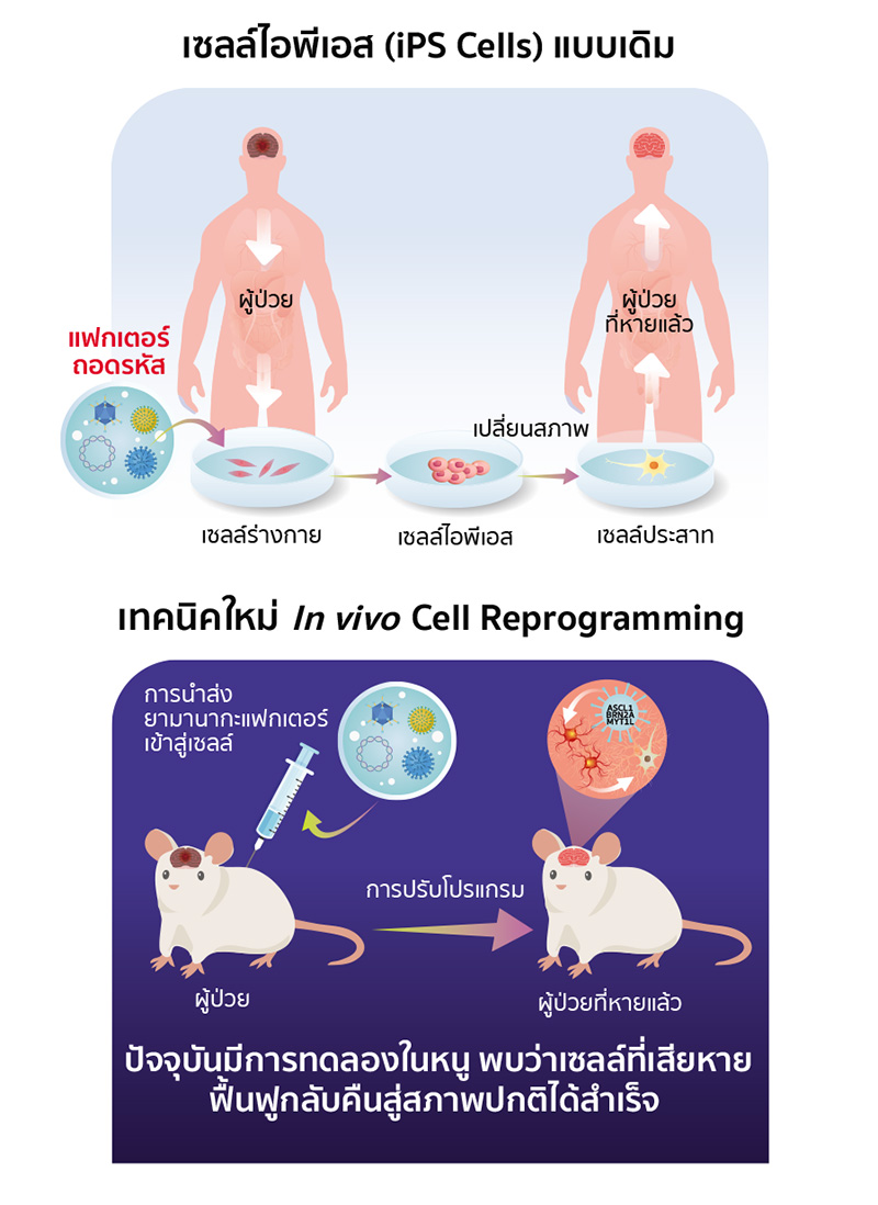 จะเป็นอย่างไรหากเราสามารถเปลี่ยนเซลล์ชนิดหนึ่งให้เป็นเซลล์อีกชนิดหนึ่งได้โดยตรงในร่างกาย ไม่ต้องนำเซลล์ออกมาเพาะเลี้ยงในห้องปฏิบัติการ และไม่ต้องปลูกถ่ายอวัยวะ และนี่คือเทคโนโลยี in vivo Cell Reprogramming หรือ การปรับโปรแกรมเซลล์ใหม่ในสิ่งมีชีวิต เทคโนโลยีที่อาจจะมาพลิกโฉมวงการสุขภาพ การรักษาโรคเรื้อรัง รวมถึงการชะลอวัย