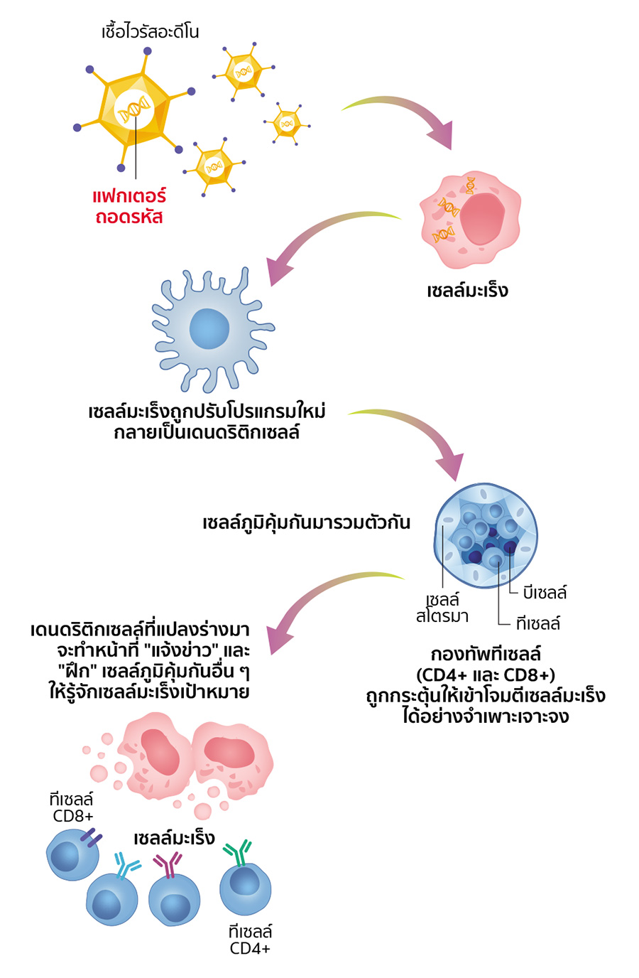 ปัจจุบันมีโครงการวิจัย เช่น การเปลี่ยนเซลล์มะเร็งเป็นเซลล์ภูมิคุ้มกัน โดยใช้อะดีโนไวรัสที่ถูกดัดแปลงพันธุกรรมและใช้เป็นพาหะ (vector) ในการนำส่งยีนเข้าไปในเซลล์มะเร็ง เพื่อเปลี่ยนให้เซลล์มะเร็งกลายเป็นเซลล์ภูมิคุ้มกันที่ชื่อว่า เดนดริติกเซลล์ (dendritic cell) ซึ่งเซลล์ชนิดนี้ทำหน้าที่กระตุ้นระบบภูมิคุ้มกันของร่างกายให้กลับมาสู้กับมะเร็งอย่างมีประสิทธิภาพ เป็นแนวคิด “การเปลี่ยนศัตรูให้เป็นพันธมิตร” ที่สร้างความตื่นตัวให้กับวงการวิทยาศาสตร์ อีกทั้งยังเป็นความหวังในการพัฒนาวิธีการรักษาโรคต่าง ๆ โดยมีโครงการวิจัยทางคลินิกที่มุ่งเป้าไปที่โรคจอประสาทตาเสื่อม, โรคเบาหวานชนิดที่ 1 และการฟื้นฟูหลอดเลือดสำหรับผู้ป่วยโรคหัวใจ
