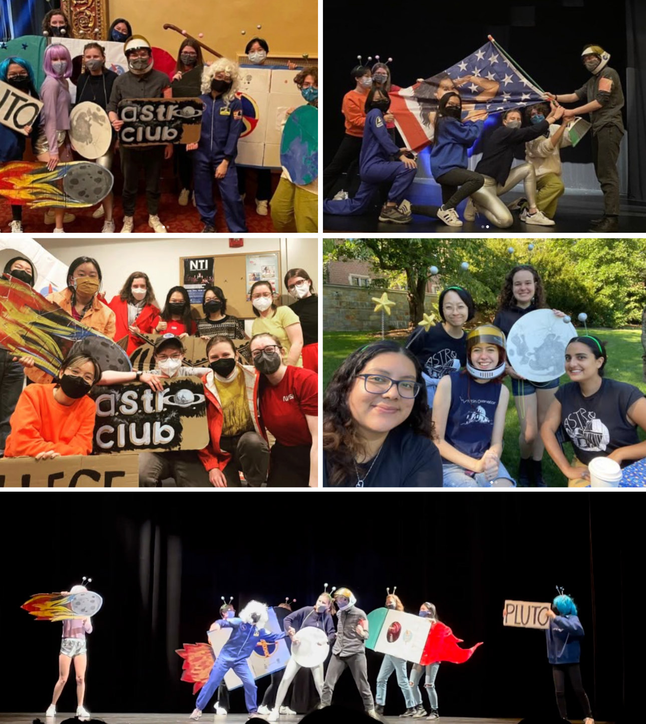 ในฐานะที่ตัวฉันเข้าชมรมตั้งแต่ปีหนึ่ง ท่ามกลางรุ่นพี่ที่เป็นประธานชมรม พอพี่ ๆ เห็นว่าชอบวาดรูป เลยดึงตัวไปช่วยทำพรอป รวมไปถึงทำอุปกรณ์ตกแต่งฉาก อย่างพวกจรวดและดาวต่าง ๆ ไป ๆ มา ๆ ก็โดนจับใส่ชุดนักบินอวกาศและวิกผมไอน์สไตน์ กลายเป็นเมนแดนเซอร์กลางเวทีใหญ่แบบเขิน ๆ พวกเราช่วยกันออกแบบการแสดงโดยแต่งเป็นเรื่องราวเล่าประวัติศาสตร์ตามการแข่งขันนวัตกรรมอวกาศระหว่างโซเวียตกับสหรัฐอเมริกา เริ่มด้วยเพลงเนิบ ๆ อย่าง William Tell Overture แล้วตัดไปแดนซ์กระจายกับเพลง Starship ของนิกกี มินาจ (Nicki Minaj) แบบงง ๆ แต่ก็สนุกดี ซ้อมกันอยู่ประมาณเกือบสามสัปดาห์ และแล้วพวกเราก็คว้ารางวัลที่สองมาได้ ! นับเป็นเวทีแรกที่ฉันได้แสดงการสื่อสารวิทยาศาสตร์ในอีกรูปแบบที่แตกต่างไปจากที่คุ้นเคยแบบไม่คิดไม่ฝันมาก่อนว่าจะมีโอกาสได้เข้าร่วม