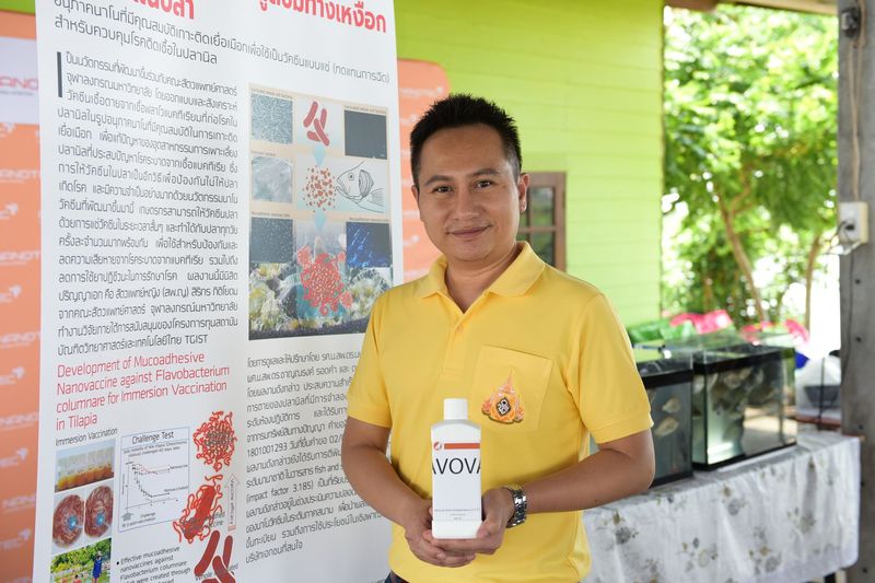 ศูนย์นาโนเทคโนโลยีแห่งชาติ (นาโนเทค) สำนักงานพัฒนาวิทยาศาสตร์และเทคโนโลยีแห่งชาติ (สวทช.) จึงได้ร่วมมือกับ คณะสัตวแพทยศาสตร์ จุฬาลงกรณ์มหาวิทยาลัย พัฒนานวัตกรรมนาโนวัคซีน ในรูปของอนุภาคนาโนที่มีคุณสมบัติดูดซึมทางเหงือกและเกาะติดเยื่อเมือก ทดแทนการฉีดแบบเดิม ซึ่งนับว่าได้ผลดี นาโนวัคซีนสามารถควบคุมโรคติดเชื้อในปลานิลได้ดี แก้ปัญหาโรคระบาดในอุตสาหกรรมเพาะเลี้ยงปลานิล โดยใช้ได้กับปลานิลทุกขนาด ครั้งละจำนวนมาก ทำให้ใช้ต้นทุนต่ำ ประหยัดเวลาและแรงงาน อีกทั้งช่วยให้ปลาแข็งแรง ลดการใช้ยาและสารเคมี ได้เนื้อปลาที่ปลอดภัยกับผู้บริโภค สะอาด เป็นมิตรกับสิ่งแวดล้อม ส่งผลดีต่ออุตสาหกรรมเลี้ยงปลาและผู้บริโภคโดยตรง ทั้งนี้ ได้มีการทดสอบแล้วที่ณันต์ธชัยฟาร์ม อ.บางบ่อ จ.สมุทรปราการ