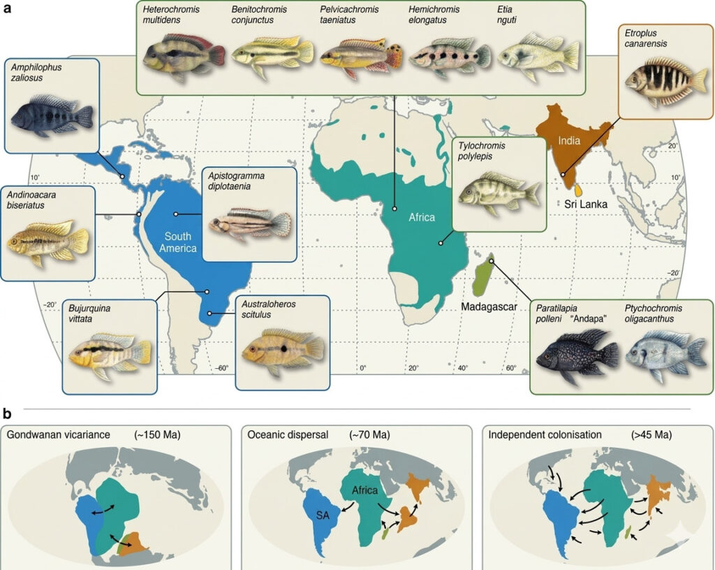 การกระจายตัวของปลาในวงศ์ Cichlidae ทั่วโลกและสมมติฐานวิวัฒนาการ