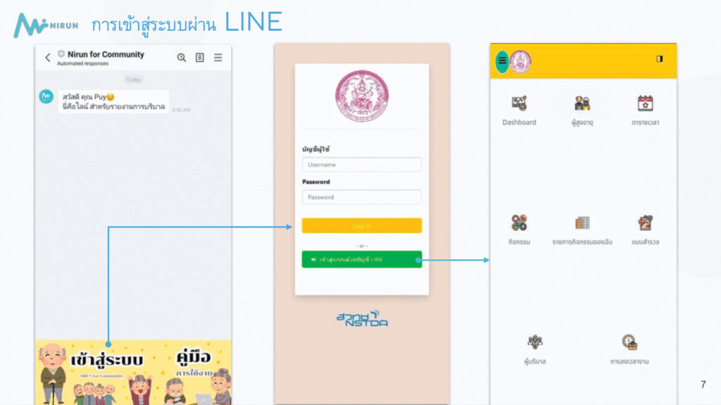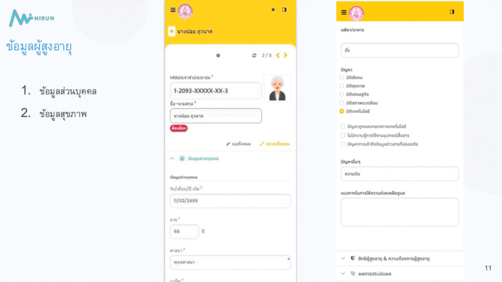 นายธาวินทร์ ลีลาคุณารักษ์ ผู้บริบาลคุ้มครองสิทธิผู้สูงอายุ องค์การบริหารส่วนตำบลนิคมกระเสียว อำเภอด่านช้าง จังหวัดสุพรรณบุรี กล่าวว่า “ระบบนิรันดร์ช่วยให้ผู้บริบาลทำงานสะดวกและรวดเร็วยิ่งขึ้น ทั้งในการบันทึกข้อมูลรายวัน ติดตามการดูแลผู้สูงอายุแบบเรียลไทม์ และวิเคราะห์ข้อมูลอย่างครอบคลุมในทุกมิติ ระบบยังช่วยให้ค้นหาข้อมูลผู้สูงอายุได้สะดวกและรวดเร็วด้วยโทรศัพท์มือถือ แทนการค้นหาจากเอกสารกระดาษแบบเดิม และระบุพิกัดที่อยู่ของผู้สูงอายุได้อย่างแม่นยำ ช่วยลดเวลาในการลงพื้นที่ และที่สำคัญ ข้อมูลที่บันทึกไว้สามารถนำไปวิเคราะห์วางแผนการดูแลรายบุคคลและรายพื้นที่ได้อย่างเหมาะสม โดยเฉพาะด้านการเข้าถึงสิทธิสวัสดิการ ช่วยให้ผู้บริบาลประสานกับหน่วยงานต่าง ๆ เพื่อให้ผู้สูงอายุได้รับสิทธิประโยชน์ได้อย่างรวดเร็ว”