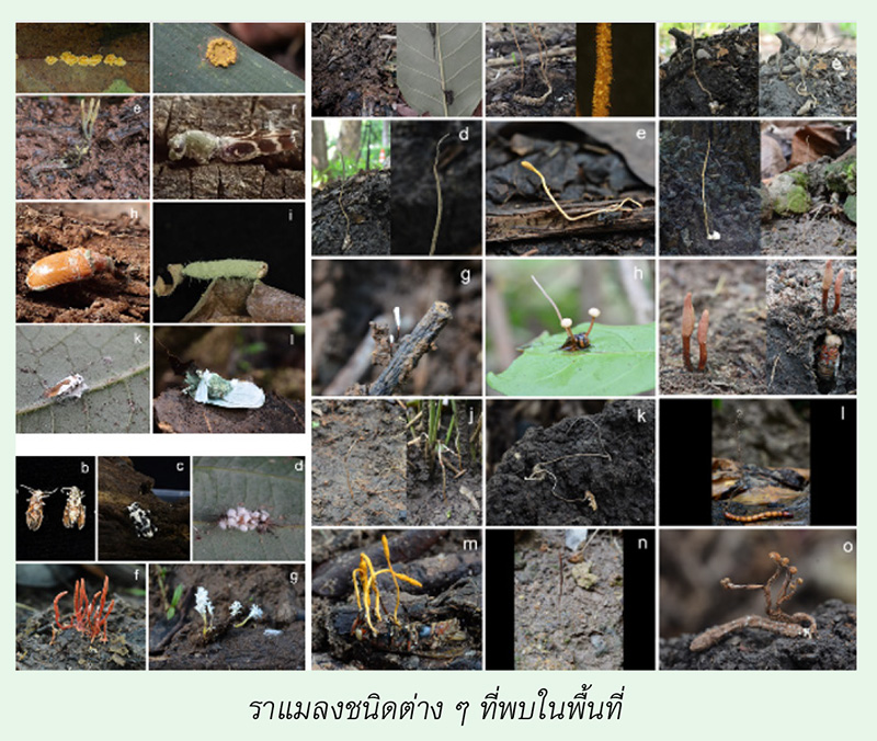ดำเนินการสำรวจและพัฒนาราแมลงที่มีศักยภาพทางเศรษฐกิจ เพื่อต่อยอดสู่การใช้ประโยชน์เป็นชีวภัณฑ์ควบคุมศัตรูพืช ลดการพึ่งพาสารเคมีในภาคการเกษตร เสริมสร้างรายได้ให้เกษตรกร และช่วยรักษาสมดุลของระบบนิเวศ ควบคู่กับการยกระดับองค์ความรู้ด้านเทคโนโลยีชีวภาพสู่ชุมชนในพื้นที่ การสำรวจตัวอย่างราแมลงจาก 7 เส้นทางในพื้นที่เหมืองผาแดงและพื้นที่เกษตรโดยรอบ พบราแมลงรวมทั้งสิ้น 178 สายพันธุ์ โดยจัดจำแนกตามหลักอนุกรมวิธานด้วยเทคนิคชีวโมเลกุลได้ 167 สายพันธุ์ และจำแนกด้วยลักษณะทางสัณฐานวิทยาได้ 11 สายพันธุ์ พบชนิดที่มีความโดดเด่น เช่น Cordyceps tenuipes และ Cordyceps lepidopterorum อีกทั้งพบราแมลงชนิดใหม่ของโลกจำนวน 1 ชนิด คือ Ophiocordyceps muscae และพบราแมลงที่มีรายงานเป็นครั้งแรกในพื้นที่จำนวน 4 ชนิด โดยทีมวิจัยได้รวบรวมข้อมูลราแมลงที่ผ่านการจัดจำแนกชนิดพันธุ์และนำเข้าสู่เว็บไซต์ Fungi of Thailand (www.biotec-fungi.com) เพื่อเป็นฐานข้อมูลอ้างอิงสำหรับผู้สนใจ และเพื่อสนับสนุนการพัฒนาและการใช้ประโยชน์ราแมลงของประเทศอย่างถูกต้องและยั่งยืน
