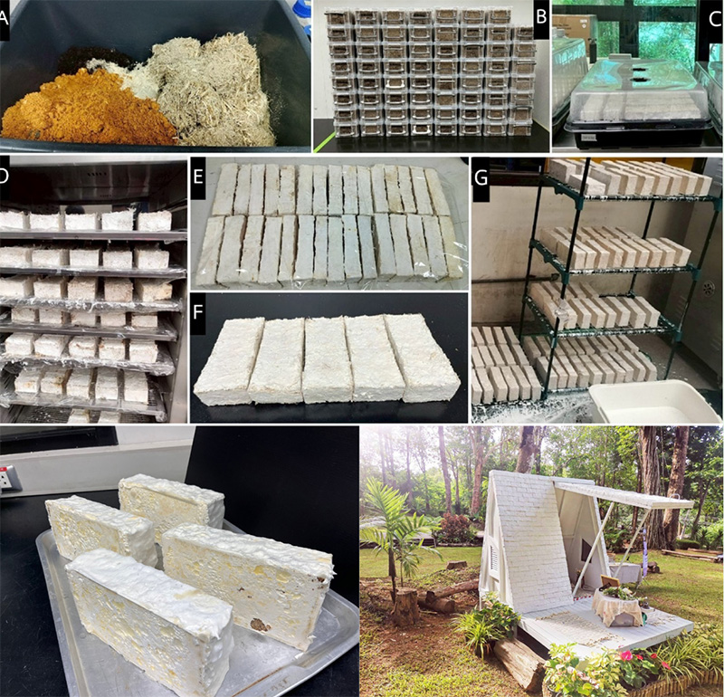 - อิฐจากเห็ดและเศษเหลือใช้ทางเกษตรสู่ที่อยู่อาศัยขนาดเล็กทางเลือก