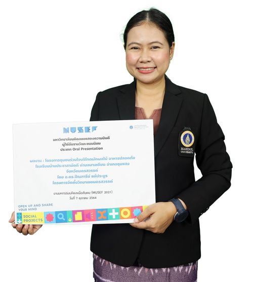 อาจารย์ ดร.ปัณฑารีย์ แต้ประยูร อาจารย์ประจำ หลักสูตรวิทยาศาสตรบัณฑิต สาขาวิชาเกษตรกรปราชญ์เปรื่อง (Smart Farmer) โครงการจัดตั้งวิทยาเขตนครสวรรค์ มหาวิทยาลัยมหิดล ในฐานะพี่เลี้ยงโครงการชุมชนร่วมกันบริโภคผักผลไม้ปลอดภัย โรงเรียนบ้านประชาสามัคคี ตำบลบางเคียน อำเภอชุมแสง จังหวัดนครสวรรค์ ซึ่งเป็นโครงการที่สามารถคว้ารางวัลคะแนนยอดนิยม Oral Presentation ในงานมหกรรมมหิดลเพื่อสังคม (Mahidol University Engagement Forum 2021 – MUSEF 2021) ซึ่งจัดขึ้นทางออนไลน์เมื่อเร็วๆ นี้ ได้เปิดเผยถึง “บันไดสู่ความสำเร็จ” จากการสามารถสร้างโมเดล “บันไดสู่ผลลัพธ์” ของโครงการนำร่องดังกล่าวว่า สามารถทำให้เกิด “ชุมชนต้นแบบ” จากการใช้โรงเรียนที่อยู่ในชุมชนนครสวรรค์ เป็น “ศูนย์กลาง” ในการจัดการอาหารปลอดภัย โดยนอกจากมีกลุ่มเป้าหมายที่เป็นกลุ่มนักเรียนในระดับชั้นต่างๆ ของโรงเรียนแล้ว