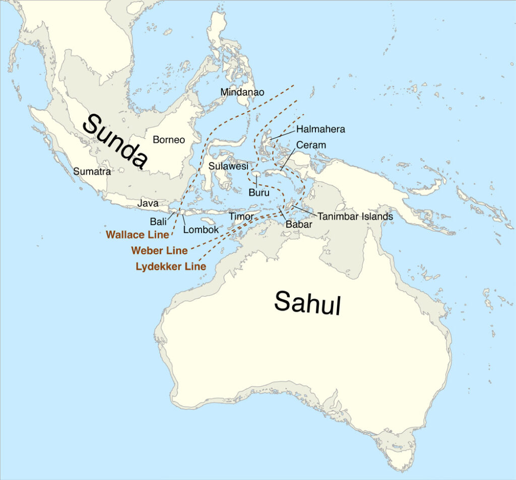 เส้นวอลเลซ (Wallace Line) ที่แบ่งแยกความแตกต่างของสิ่งมีชีวิตในเอเชียตะวันออกเฉียงใต้กับออสเตรเลียออกจากกัน โดยเกิดจากการเพิ่มความสูงของระดับน้ำทะเลในช่วงยุคน้ำแข็งครั้งสุดท้ายมากกว่า 110 เมตร จนกลายเป็นตัวกั้นขวางการเดินทางไปมาของสิ่งมีชีวิตจากแผ่นดินสองฝั่งของเส้นดังกล่าว