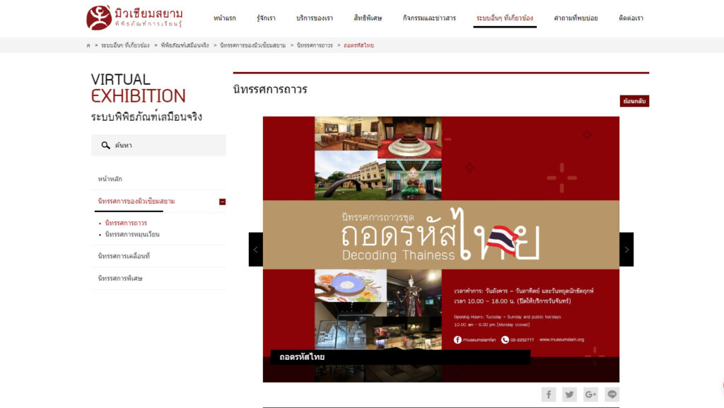 เข้าชมนิทรรศการเสมือนจริง 360 องศา “ถอดรหัสไทย” ได้ที่ลิงก์ https://www.museumsiam.org/virtualexhibition/DecodeThai_4
