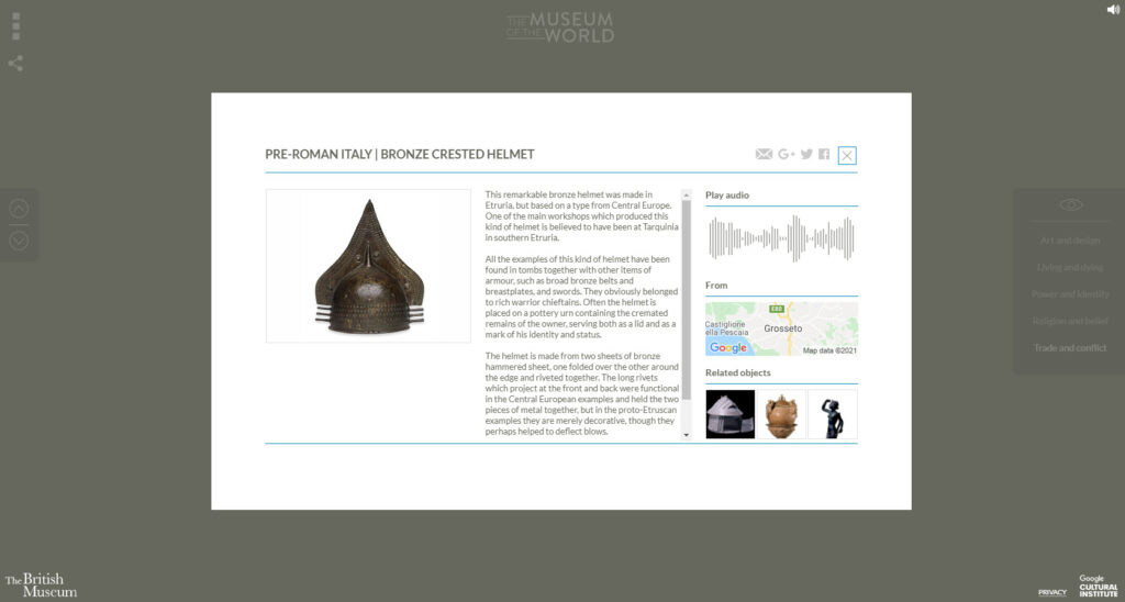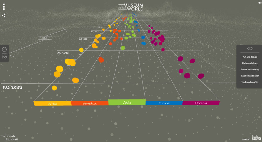 แม้ในช่วงนี้จะไปเยี่ยมชมถึงสถานที่จริงไม่ได้ แต่เราก็ยังสามารถเข้าชมนิทรรศการออนไลน์ The Museum of the world ของ British Museum ซึ่งทำออกมาได้น่าสนใจมาก มีรูปแบบการแสดงผลลำดับตามช่วงเวลา ตั้งแต่ยุคปัจจุบันย้อนกลับไปจนถึงช่วงก่อนคริสตกาล โดยแบ่งข้อมูลนิทรรศการออกเป็น 5 ทวีป ได้แก่ ทวีปแอฟริกา ทวีปอเมริกา ทวีปเอเชีย ทวีปยุโรป และทวีปโอเชียเนีย