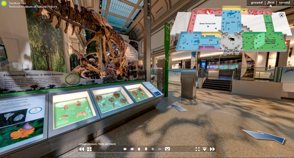 ในส่วนของการเข้าเยี่ยมชมพิพิธภัณฑ์ออนไลน์ก็ทำได้น่าตื่นตาตื่นใจไม่แพ้การเข้าชมสถานที่จริง เมื่อเราเข้าสู่เว็บไซต์ https://naturalhistory2.si.edu/vt3/NMNH/ แล้วก็จะเจอ “เฮนรี (Henry)” ช้างแอฟริกา ยืนรอต้อนรับผู้เข้ามาเยี่ยมชม