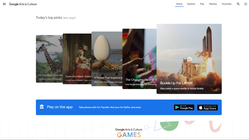 แพลตฟอร์มออนไลน์ Google Arts & Culture ของ Google เปิดให้ทุกคนเข้าถึงผลงานที่จัดแสดงอยู่ในพิพิธภัณฑ์กว่า 1,200 แห่งทั่วโลก โดยรวมถึงพิพิธภัณฑ์และองค์กรด้านศิลปะของไทยด้วย