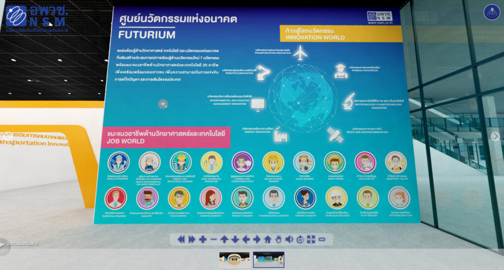 ปิดท้ายกันด้วยองค์การพิพิธภัณฑ์วิทยาศาสตร์แห่งชาติ หรือ อพวช. แหล่งเรียนรู้ด้านวิทยาศาสตร์ที่ใหญ่ที่สุดในประเทศไทย ซึ่งตั้งอยู่ที่คลองห้า จังหวัดปทุมธานี เปิดตัวเว็บไซต์โฉมใหม่ที่ปรับเป็น virtual tour เต็มรูปแบบ ในมุมมองกราฟิกแบบ 360 องศา เพื่อเยี่ยมชมศูนย์นวัตกรรมแห่งอนาคต หรือ Futurium แหล่งเรียนรู้วิทยาศาสตร์ เทคโนโลยี และนวัตกรรมแห่งอนาคต โดยเข้าชมได้ที่ลิงก์ https://nsm.or.th/Introduction.html