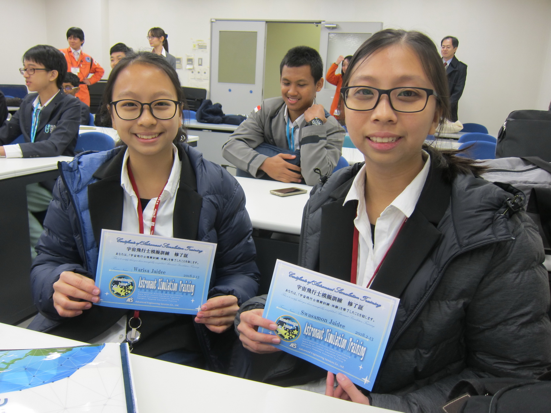 เราสองคนรู้สึกตื่นเต้นมากๆที่ได้มีโอกาสไปร่วมชมการทดลองที่ถ่ายทอดสดจากสถานี ISS มายังภาคพื้นดินที่ผ่านห้องบังคับการที่ ศูนย์อวกาศเมืองสึคุบะ (Tsukuba Space Center) ของ JAXA ณ ประเทศญี่ปุ่น เราได้ฟังแนวความคิดของเพื่อนๆประเทศอื่นๆที่ก็ส่งการทดลองมาเช่นกัน พวกเขาล้วนมีจุดประกายเริ่มต้นที่แตกต่างกันไป ได้เห็นในหลายๆมุมมองของเพื่อนๆในแต่ละประเทศ ซึ่งส่วนใหญ่พวกเขาอยากมีโอกาสได้ขึ้นไปบนยานอวกาศจึงอยากเป็นวิศวกร และนักบินอวกาศ เรายังได้มีโอกาสได้เข้าชม Tsukuba Expo Center และพิพิธภัณฑ์อวกาศ JAXA ได้เห็นเทคโนโลยีอวกาศ ทั้งแบบจำลองดาวเทียม กระสวยอวกาศ และจรวดขนส่งดาวเทียม และได้เข้าร่วมกิจกรรมจำลองการฝึกทำภารกิจบนอวกาศ เตรียมตัวเพื่อที่จะเป็นนักบินอวกาศจริงๆ สำหรับฉันกับพี่ถึงแม้จะยังไม่ได้ขึ้นไปอยู่บนอวกาศตามที่เราฝันกันไว้ แต่ฉันกับพี่ก็ดีใจที่ได้รู้ว่า เราก้าวเข้าไกลความฝันขึ้นมาอีกขั้นหนึ่งแล้ว