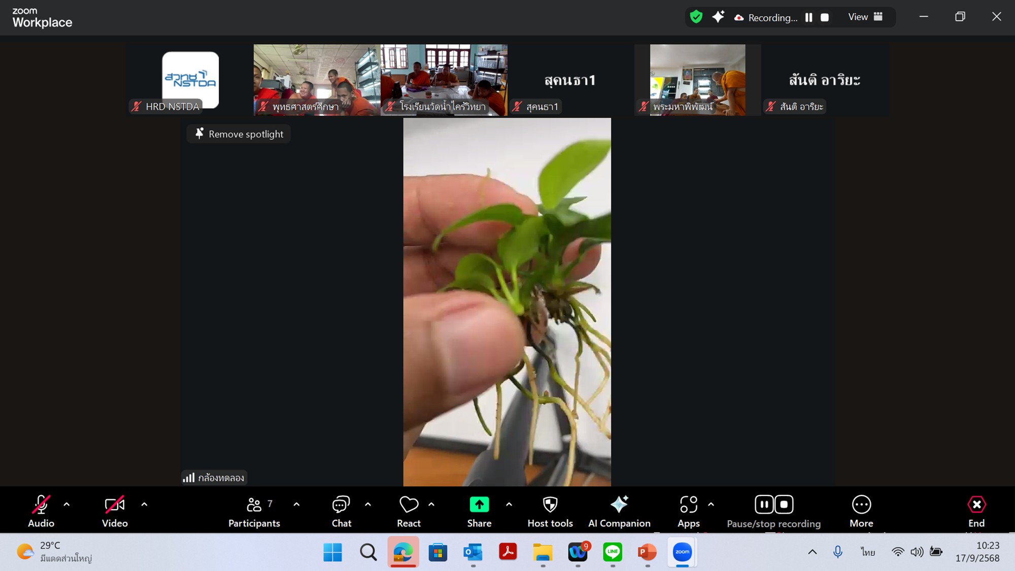 โครงการเรียนรู้วิทยาศาสตร์และเทคโนโลยีในโรงเรียนพระปริยัติธรรม แผนกสามัญศึกษา ตามพระราชดำริ ฯ ฝ่ายประสานงานหน่วยงานความร่วมมือเพื่อการพัฒนากำลังคนและโครงการอันเนื่องมาจากพระราชดำริ (PAR) ด้านพัฒนากำลังคนทางวิทยาศาสตร์และเทคโนโลยี (HRDS) ได้จัดอบรมการขยายผลปลูกพืชมูลค่าให้แก่โรงเรียนพระปริยัติธรรมฯ นำร่อง จำนวน 4 โรงเรียน รูปแบบออนไลน์ ในวันที่ 17 ก.ย. 68 โดยมีครูเข้าร่วม จำนวน 5 รูป/คน และสามเณรนักเรียน จำนวน 17 รูป เพื่อเสริมสร้างความรู้เข้าใจในการปลูก ขยายพันธุ์ และวิธีการดูแลต้นอะนูเบียส(พืชมูลค่า) และส่งผลผลิตให้ทางสวทช.เพื่อดูคุณภาพและเพื่อสร้างให้ครูและสามเณรนักเรียนเกิดความชำนาญในการปลูกและมีความสามารถในการจัดจำหน่ายในท้องตลาดได้จริง