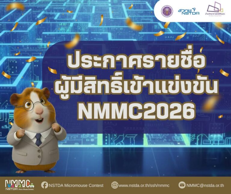 ประกาศรายชื่อผู้มีสิทธิ์เข้าร่วมการแข่งขัน NSTDA Micro-Mouse Contest 2026 (NMMC 2026) ยืนยันสิทธิ์เข้าร่วมการแข่งขันภายในวันที่ 28 มกราคม 2569 เวลา 23.59