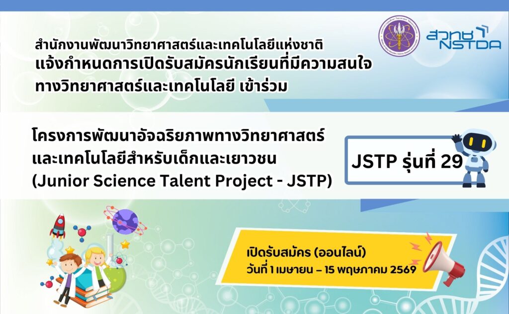 แจ้งกำหนดการเปิดรับสมัครนักเรียนที่มีความสนใจทางวิทยาศาสตร์และเทคโนโลยี เข้าร่วม