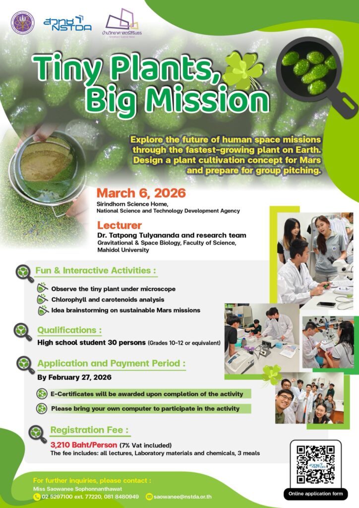 เปิดรับสมัครแล้ว! ค่าย “Tiny Plants, Big Mission” : สำรวจพืชจิ๋วกับภารกิจพิชิตอวกาศ!🌱
