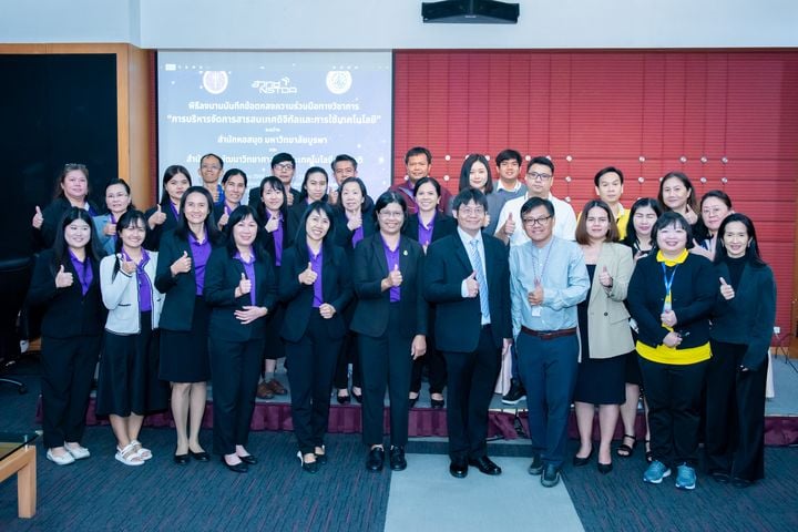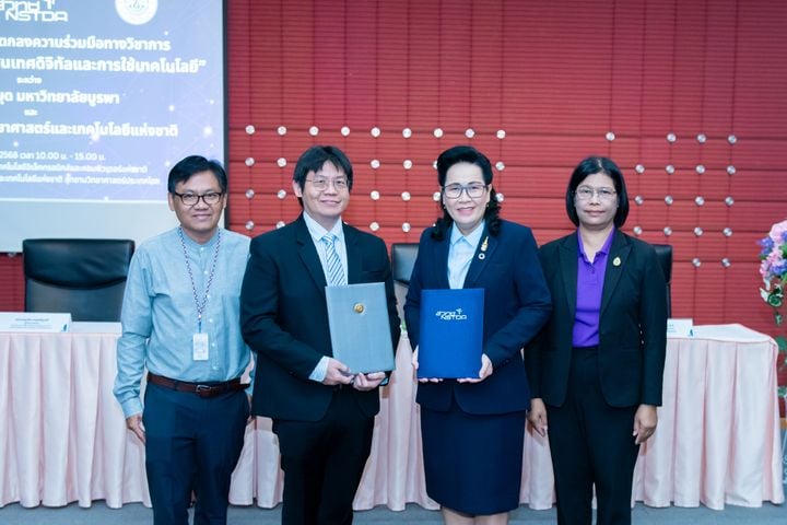 (20 มกราคม 2568) ณ อุทยานวิทยาศาสตร์ประเทศไทย จ.ปทุมธานี – สำนักงานพัฒนาวิทยาศาสตร์และเทคโนโลยีแห่งชาติ (สวทช.) โดย ฝ่ายบริการความรู้ทางวิทยาศาสตร์และเทคโนโลยี กระทรวงการอุดมศึกษา วิทยาศาสตร์ วิจัยและนวัตกรรม (อว.) และ สำนักหอสมุด มหาวิทยาลัยบูรพา ลงนามความร่วมมือทางวิชาการ “ด้านการบริหารจัดการสารสนเทศดิจิทัลและการใช้เทคโนโลยี” โดยมี ดร. จุฬารัตน์ ตันประเสริฐ รองผู้อำนวยการ สำนักงานพัฒนาวิทยาศาสตร์และเทคโนโลยีแห่งชาติ และ นายเหมรัศมิ์ วชิรหัตถพงศ์ ผู้อำนวยการสำนักหอสมุด มหาวิทยาลัยบูรพา เป็นประธานการลงนามความร่วมมือ และมี นายบุญเลิศ อรุณพิบูลย์ ผู้อำนวยการฝ่ายบริการความรู้ทางวิทยาศาสตร์และเทคโนโลยี และ นางวัชรีย์พร คุณสนอง รองผู้อำนวยการฝ่ายวิชาการ สำนักหอสมุด มหาวิทยาลัยบูรพา ร่วมเป็นสักขีพยานในพิธีลงนาม