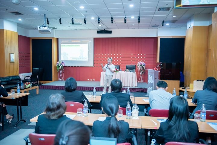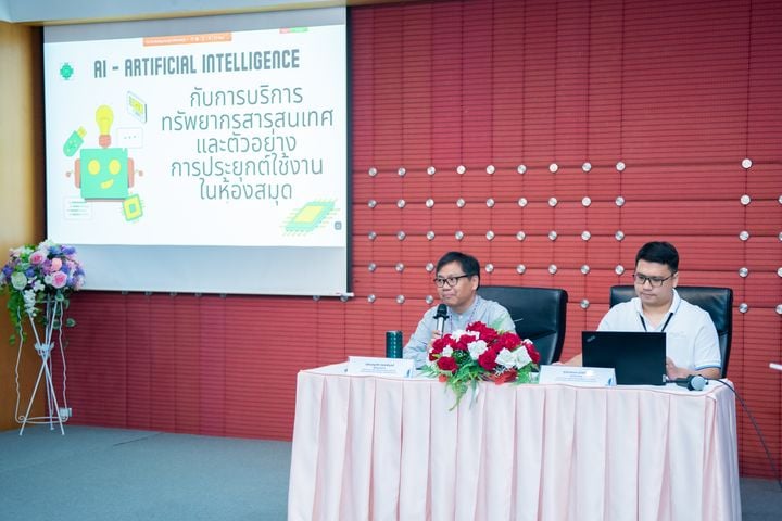 นอกจากนี้ มีการบรรยาย เรื่อง “AI กับการบริการทรัพยากรสารสนเทศและตัวอย่างการประยุกต์ใช้งานในห้องสมุด” โดย นายบุญเลิศ อรุณพิบูลย์ ผู้อำนวยการฝ่ายบริการทางความรู้ทางวิทยาศาสตร์และเทคโนโลยี สวทช. ร่วมกับ นายนพพร ม่วงระย้า นักวิชาการ ฝ่ายบริการทางความรู้ทางวิทยาศาสตร์และเทคโนโลยี สวทช. และการบรรยายเรื่อง “จากวันนี้ถึงอนาคต: เอไอกับบทบาทใหม่ของการเรียนรู้” โดยนายชัชวาลย์ สังคีตตระการ วิศวกรอาวุโส กลุ่มวิจัยปัญญาประดิษฐ์ ทีมวิจัยการเข้าใจเสียงและข้อความ ศูนย์เทคโนโลยีอิเล็กทรอนิกส์และคอมพิวเตอร์แห่งชาติ และเยี่ยมชมบ้านวิทยาศาสตร์สิรินธร