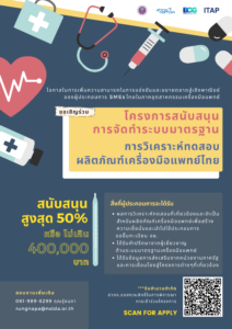 โครงการสนับสนุนการจัดทำระบบมาตรฐานการวิเคราะห์ทดสอบผลิตภัณฑ์เครื่องมือแพทย์ไทย Read More » 04/05/2022