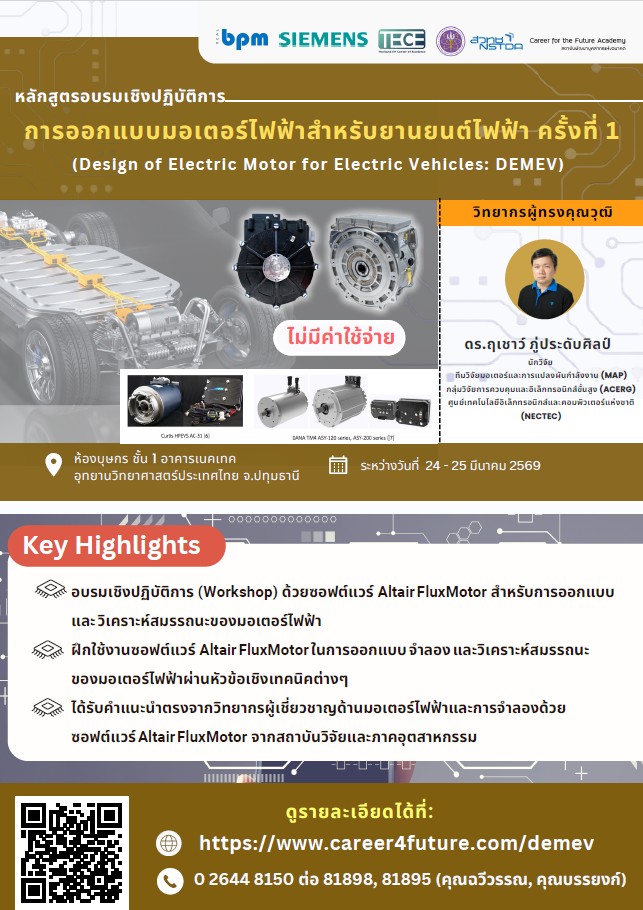 ศูนย์ความเป็นเลิศด้านยานยนต์ไฟฟ้าประเทศไทย (TECE) สำนักงานพัฒนาวิทยาศาสตร์และเทคโนโลยีแห่งชาติ (สวทช.) ขอเชิญผู้สนใจเข้าร่วม