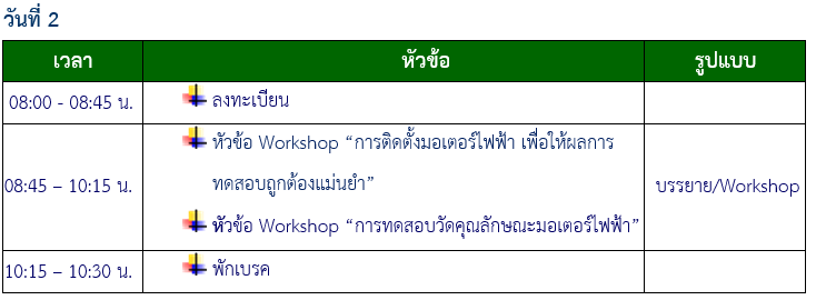 ศูนย์ความเป็นเลิศด้านยานยนต์ไฟฟ้าประเทศไทย (TECE) สำนักงานพัฒนาวิทยาศาสตร์และเทคโนโลยีแห่งชาติ (สวทช.) จัดอบรมหลักสูตรอบรมเชิงปฏิบัติการ “การทดสอบมอเตอร์ไฟฟ้าสำหรับยานยนต์ไฟฟ้า” ครั้งที่ 2 ระหว่างวันที่ 21-22 พฤษภาคม 2569
