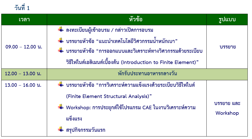 TECE  สวทช. เปิดอบรมเชิงปฏิบัติการ “การออกแบบและวิเคราะห์โครงสร้างยานยนต์ไฟฟ้าน้ำหนักเบาด้วยเทคโนโลยี CAE” ครั้งที่ 2 ระหว่างวันที่ 8-9 มิถุนายน 2569
