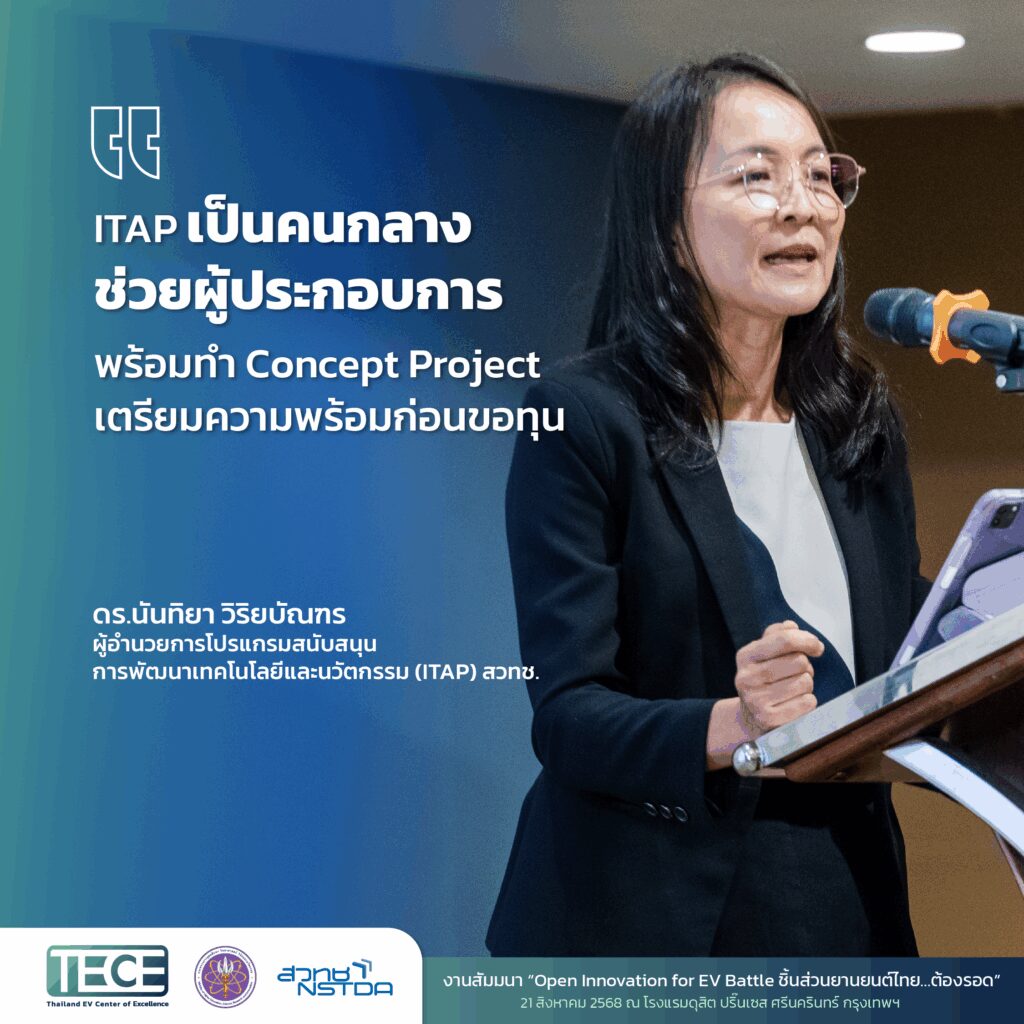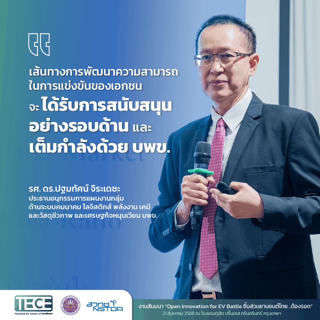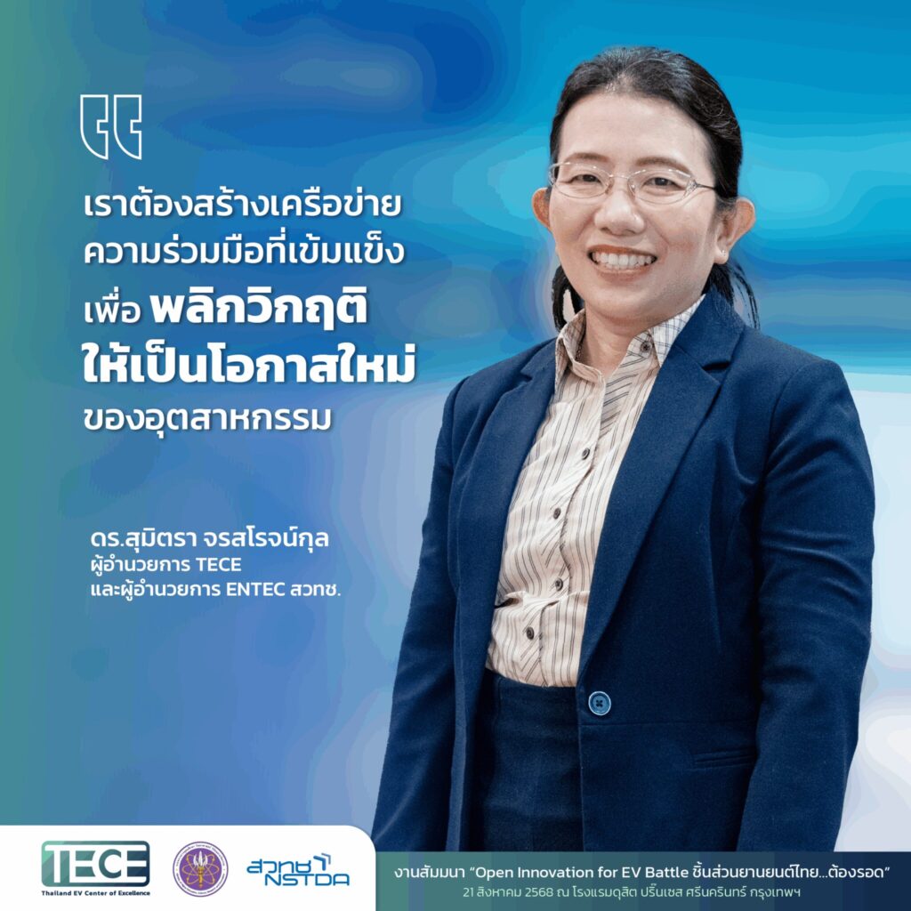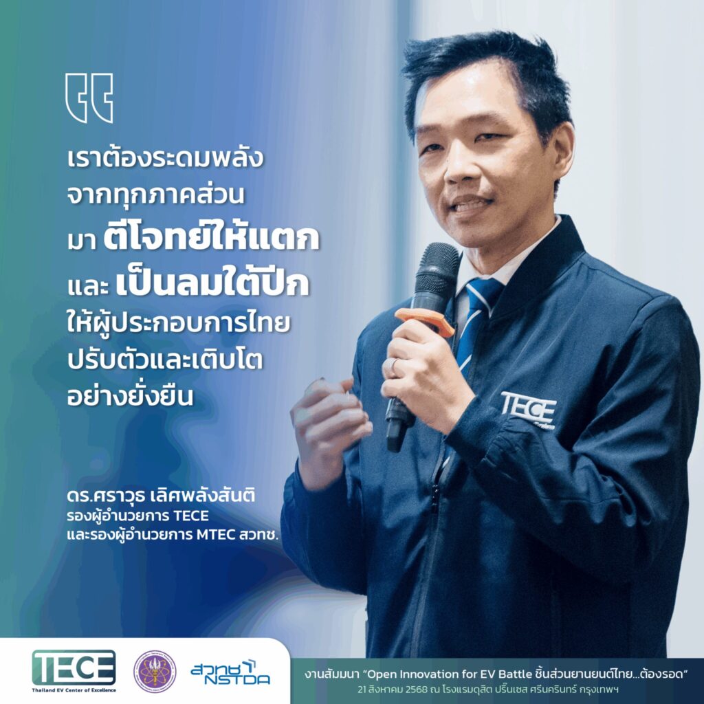 - ศูนย์ความเป็นเลิศด้านยานยนต์ไฟฟ้าประเทศไทย (TECE) สวทช. เชื่อมโยงผู้ประกอบการเข้ากับองค์ความรู้ เทคโนโลยี นวัตกรรม และแหล่งทุน
