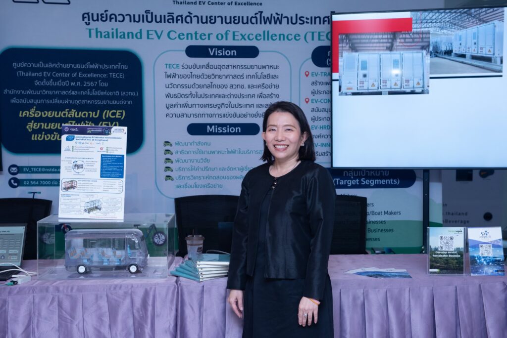 ดร.สุมิตรา จรสโรจน์กุล ผู้อำนวยการศูนย์ความเป็นเลิศด้านยานยนต์ไฟฟ้าประเทศไทย (TECE) สวทช. เปิดเผยว่า CME Platform คือหัวใจสำคัญของการเปลี่ยนผ่านสู่ยุคเศรษฐกิจสีเขียว เพราะที่ผ่านมาการคำนวณคาร์บอนเครดิตจากการใช้ EV มักมีความซับซ้อนและตรวจสอบยาก ดังนั้น สวทช. ร่วมกับพันธมิตร จึงร่วมกันสร้าง ‘กลไกความเชื่อมั่น’ ผ่านเทคโนโลยี ที่ไม่ได้เพียงเก็บข้อมูลอย่างเดียว แต่เราสร้างมูลค่าจากข้อมูลด้วย 3 องค์ประกอบหลัก คือ DataBox ที่ติดในรถเพื่อส่งข้อมูลจริง, Cloud Database ที่คำนวณการลดก๊าซเรือนกระจกอัตโนมัติ และ Dashboard ที่แสดงผลเรียลไทม์ ทำให้การทำ MRV (Measure, Report, Verify) เป็นเรื่องง่าย โปร่งใส และพร้อมนำไปสู่การยื่นขอคาร์บอนเครดิตได้ชัดเจนและทำได้ในทันที