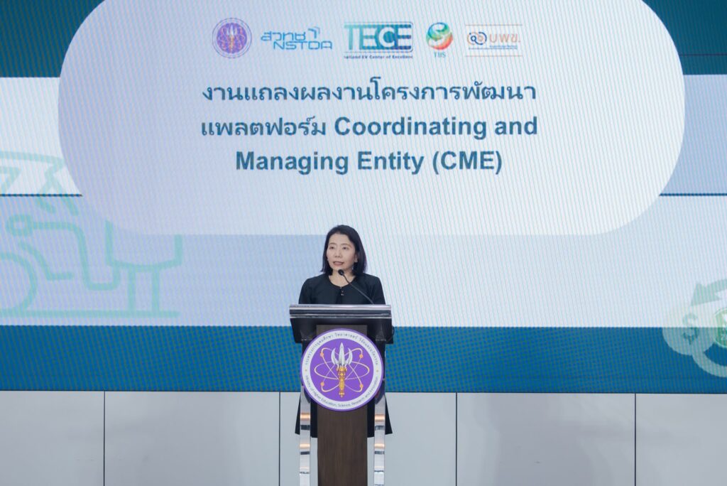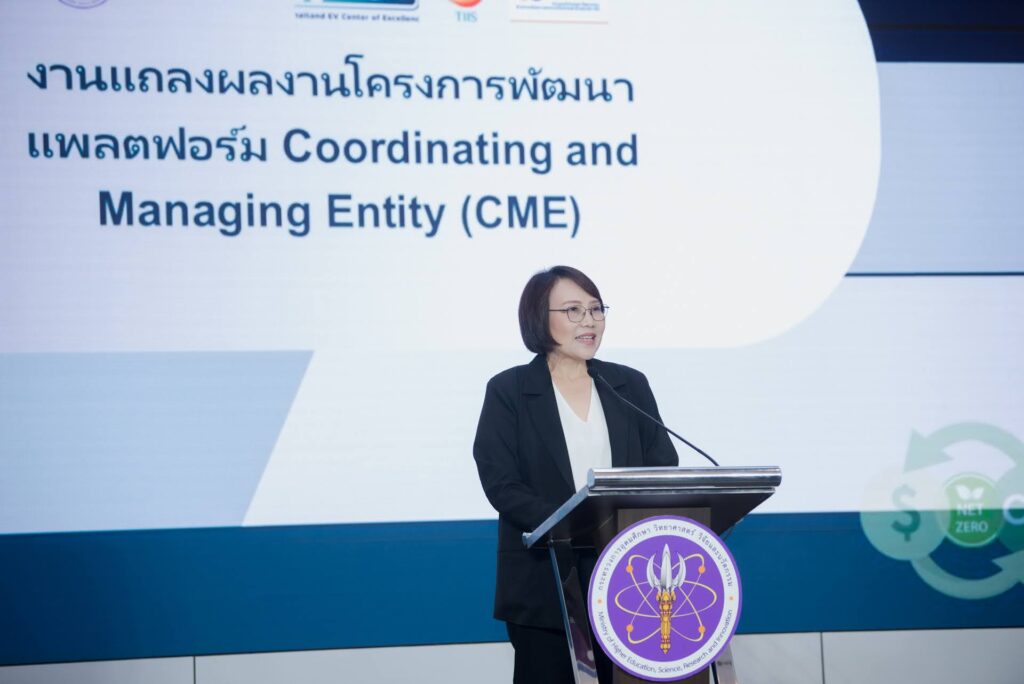 (วันที่ 19 กุมภาพันธ์ 2569) ณ อาคารพระจอมเกล้า กระทรวงการอุดมศึกษา วิทยาศาสตร์ วิจัยและนวัตกรรม (อว.): สำนักงานพัฒนาวิทยาศาสตร์และเทคโนโลยีแห่งชาติ (สวทช.) จัดงานแถลงผลงานโครงการพัฒนาแพลตฟอร์ม Coordinating and Managing Entity (CME Platform) สำหรับการบริหารจัดการคาร์บอนจากการใช้ยานยนต์ไฟฟ้า (EV) ร่วมกับการจัดทำกรณีศึกษาในพื้นที่นำร่อง (ระยะที่ 1) นวัตกรรมบริหารจัดการข้อมูลคาร์บอนจากการใช้ยานยนต์ไฟฟ้า ชูจุดเด่นการวัดผลผ่านระบบดิจิทัลที่แม่นยำและตรวจสอบได้ตามมาตรฐานสากล พร้อมประกาศความร่วมมือข้ามภาคส่วนเพื่อขับเคลื่อนประเทศไทยสู่เป้าหมาย Net Zero