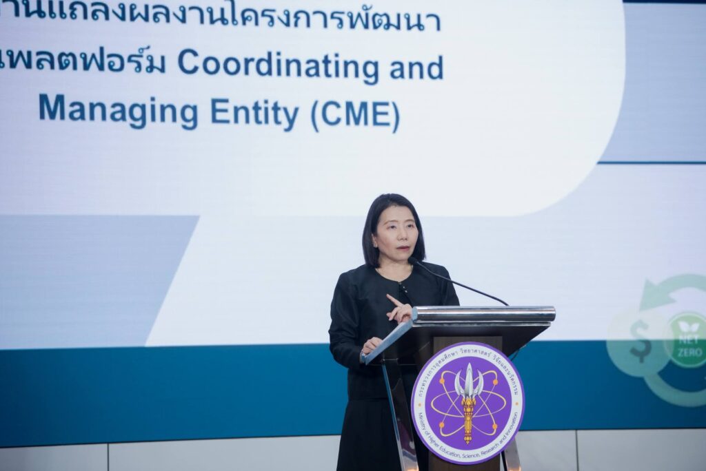 รศ. ดร.สุณีย์ กัลยะจิตร รองผู้อำนวยการหน่วยบริหารจัดการทุนด้านการเพิ่มความสามารถการแข่งขัน สำนักงานเร่งรัดการวิจัยและนวัตกรรมเพื่อเพิ่มความสามารถการแข่งขันและการพัฒนาพื้นที่ (องค์การมหาชน) (รพว.) (หรือ บพข. เดิม) กล่าวว่า ในฐานะผู้ให้ทุนสนับสนุนโครงการมีความยินดีและยืนยันพร้อมสนับสนุนทุนวิจัยต่อเนื่อง โดยเล็งเห็นว่าโครงการนี้คือจิ๊กซอว์สำคัญในการเพิ่มขีดความสามารถการแข่งขันของประเทศ การพัฒนา CME Platform ไม่ใช่เพียงแค่งานวิจัยขึ้นหิ้ง แต่เป็นโครงสร้างพื้นฐานดิจิทัล (Digital Infrastructure) ที่จะทำให้ผู้ประกอบการไทยเข้าถึงตลาดคาร์บอนเครดิตได้ง่ายขึ้น ลดต้นทุนการดำเนินงานด้าน ESG และสร้างแต้มต่อในเวทีการค้าระดับโลก