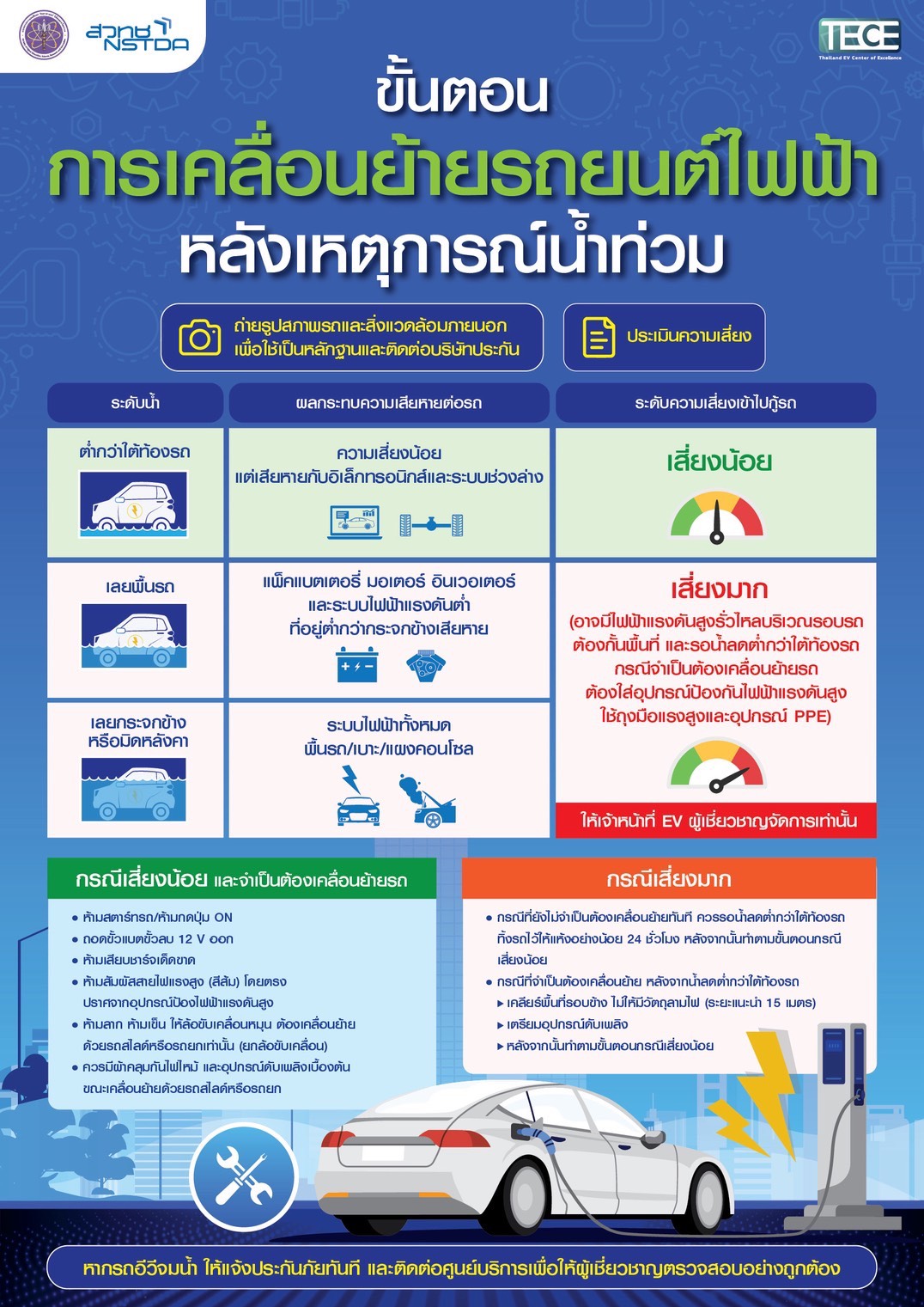 ขั้นตอนการเคลื่อนย้ายยานยนต์ไฟฟ้าหลังเหตุการณ์น้ำท่วม