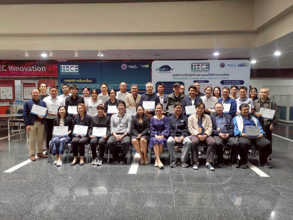 เมื่อวันที่ 11 – 12 กุมภาพันธ์ 2569 ศูนย์ความเป็นเลิศด้านยานยนต์ไฟฟ้าประเทศไทย (Thailand Electric Vehicle Excellence Center: TECE) สำนักงานพัฒนาวิทยาศาสตร์และเทคโนโลยีแห่งชาติ (สวทช.) ได้จัดอบรมเชิงปฏิบัติการในหัวข้อ “การประเมิน Carbon Footprint จากข้อมูล CAN Bus ภายในยานยนต์ไฟฟ้า สู่การขอรับรอง Carbon Credit (ครั้งที่ 1)”