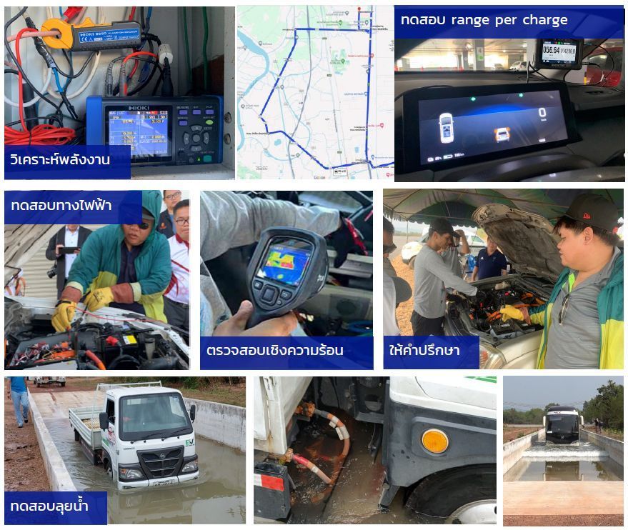 - ทดสอบสมรรถนะด้านยานยนต์ไฟฟ้าในสภาวะการใช้งานจริง เช่น พลังงานไฟฟ้าที่สามารถใช้งานได้, Energy Consumption, Range per Charge, Charging Duration, Electrical Usage of Equipment