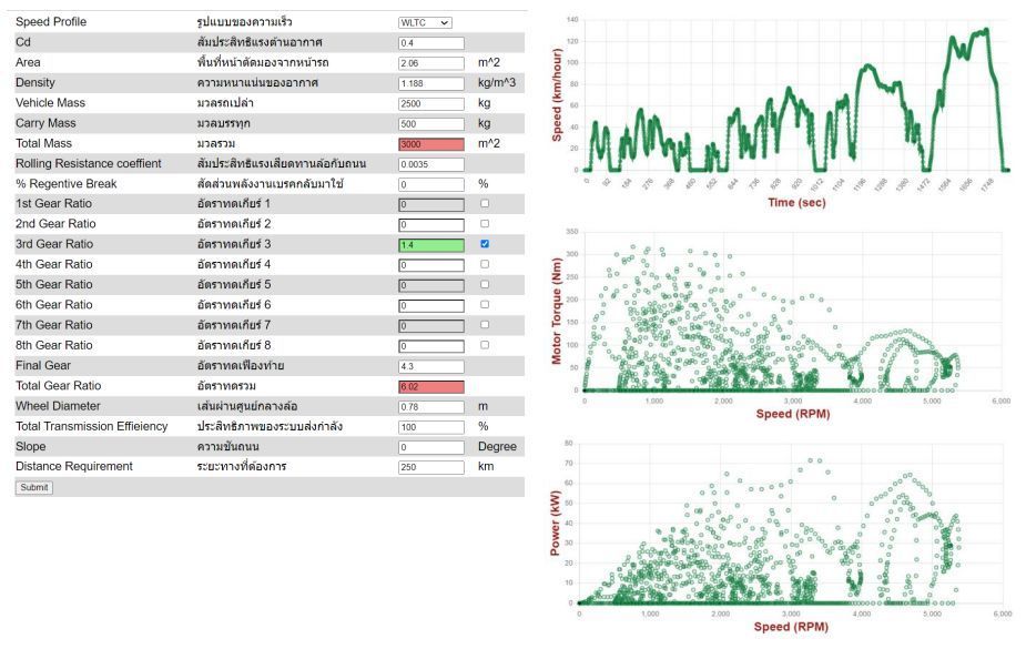 • เป็นเครื่องมือ คำนวณขนาดมอเตอร์และแบตเตอรี่สำหรับยานยนต์ไฟฟ้า (TRL9)