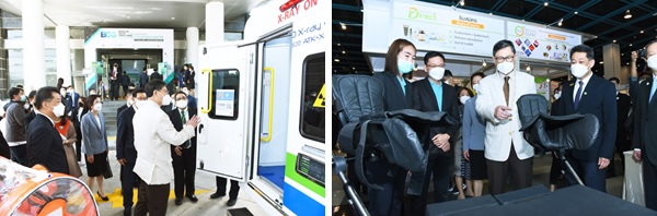 NSTDA President Dr. Narong Sirilertworakul revealed that the Health Tech Thailand 2021 onsite exhibition fully occupied 3,000 sq.m. space of Thailand Science Park Convention Center. Over 100 innovations were unveiled at the event. The onsite exhibition consisted of 50 booths, whereas the online platform contains as many as 300 booths. A total of 160 companies joined the business matching platform. Open innovation and innovation pitching were held on stage for startups to introduce and raise fund for their innovative ideas. Onsite biz clinic offered consultation by government officials and industry experts to entrepreneurs and businesses.