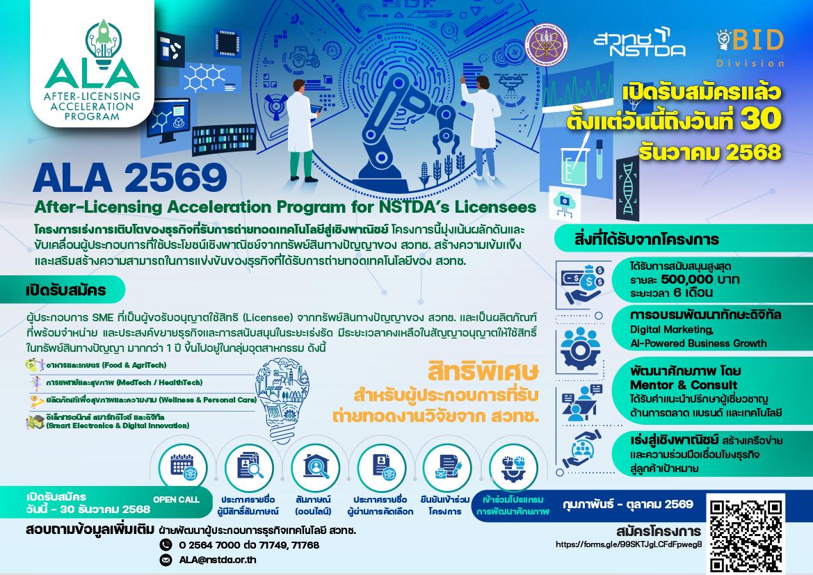 • Factsheet ข้อมูลประชาสัมพันธ์โครงการ ALA ปี 2569 สวทช.