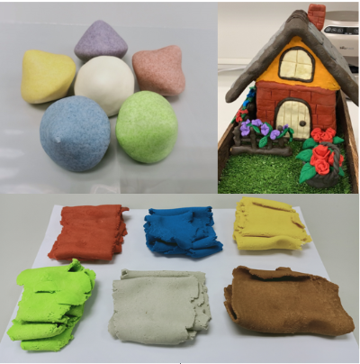 | สรุปเทคโนโลยี • ผลิตจากวัตถุดิบจากธรรมชาติ เช่น ผลิตภัณฑ์จากข้าว ข้าวโพด ยาง และ มันสำปะหลัง เป็นต้น รวมถึงสารช่วยยึดติดจากยางธรรมชาติหรือยางธรรมชาติเหลวหนืด จึงปลอดภัยทั้งต่อผู้เล่น และ สิ่งแวดล้อม • คงรูปร่างอยู่นาน ไม่แห้งแข็งเมื่อสัมผัสอากาศเป็นเวลานาน และสามารถนำกลับมาปั้นใหม่ได้ ควรเก็บในบรรจุภัณฑ์ที่อุณหภูมิต่ำกว่า 60 องศาเซลเซียส • มีความเสถียรต่ออุณหภูมิ ไม่เยิ้มเหนียวเมื่อโดนความร้อน และสามารถเล่นได้ตามปกติเมื่อเย็นตัวลง • แข็งตัวเมื่ออยู่ในที่อุณหภูมิต่ำ แต่เมื่อกลับสู่สภาวะอุณหภูมิห้อง สามารถปั้นได้ตามปกติ • สามารถฆ่าเชื้อด้วยแอลกอฮอล์ได้ |