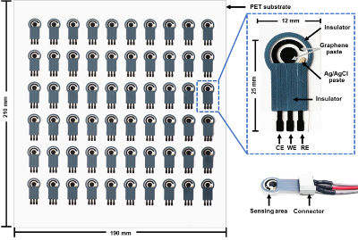 | สรุปเทคโนโลยี ขั้วไฟฟ้าพิมพ์สกรีนกราฟีนแบบใช้แล้วทิ้ง กำลังการผลิต 1,000 ชิ้นต่อวัน มีความแม่นยำในลอตการผลิต (% RSD = 6.0, n = 60) ค่าการนำไฟฟ้าสูงกว่าขั้วไฟฟ้าคาร์บอนเดิมประมาณ 2 เท่า ใช้ปริมาณสารตรวจวิเคราะห์ประมาณ 40-80 ไมโครลิตร |