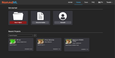| ที่มา ข้อมูลเบื้องต้น ความสำคัญของปัญหา NomadML คือแพลตฟอร์มปัญญาประดิษฐ์ที่ถูกพัฒนาขึ้นสำหรับงานทางด้าน Computer vision โดยจุดเด่นของ NomadML คือมันถูกพัฒนาให้ใช้งานได้ง่ายและเหมาะสมกับผู้ใช้งานทุกประเภท ไม่ว่าจะเป็นผู้ใช้งานทั่วไปหรือผู้เชี่ยวชาญทางด้านปัญญาประดิษฐ์ ผู้ใช้งานที่ไม่มีประสบการณ์หรือไม่เคยเขียนโค้ดมาก่อนก็สามารถเริ่มต้นใช้งานและเทรนโมเดลจากข้อมูลหรือรูปภาพที่เตรียมไว้ก่อนได้ โดย NomadML ประกอบด้วยฟังก์ชันการทำงาน 3 รูปแบบดังต่อไปนี้ • การแยกประเภทวัตถุ (Image classification) คือขั้นตอนสำหรับการระบุชนิดของวัตถุที่อยู่ในภาพ • การตรวจจับวัตถุ (Object detection) คือขั้นตอนสำหรับการระบุตำแหน่งของวัตถุที่สนใจที่อยู่ในภาพ • การแยกพื้นที่ภาพ (Image segmentation) คือขั้นตอนในการแบ่งพื้นที่ของภาพตามชนิดของวัตถุที่ต้องการ |