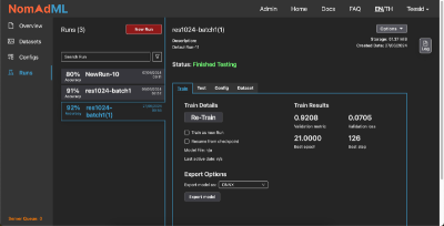 | สรุปเทคโนโลยี NomadML ได้รับการออกแบบมาให้ครอบคลุมทุกกระบวนการสำคัญที่ใช้ในการเทรนโมเดล ซึ่งประกอบด้วยการเทรนโมเดล การทดสอบโมเดล และการนำโมเดลไปใช้งานนอกระบบ ซึ่งทำให้สุดท้ายโมเดลที่ได้จากการเทรนด้วย NomadML จะไม่ถูกยึดติดว่าต้องใช้งานกับระบบ NomadML เท่านั้น |