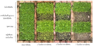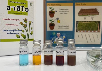 | ที่มา ข้อมูลเบื้องต้น ความสำคัญของปัญหา วัชพืชเป็นปัญหาหลักในภาคการเกษตร ทำให้ต้องนำเข้าสารเคมีกำจัดวัชพืชจำนวนมาก ซึ่งส่งผลให้เกิดสารเคมีตกค้าง ในผลผลิต รวมถึงส่งผลกระทบต่อสิ่งแวดล้อม และทำให้วัชพืชต้านทานสารเคมี การจัดการวัชพืชโดยชีววิธีที่ใช้จุลินทรีย์มีข้อจำกัดเรื่องประสิทธิภาพและการใช้งาน จึงมีการพัฒนาเทคโนโลยีชีวภัณฑ์กำจัดวัชพืช โดยใช้สารชีวภาพจากรา Lasiodiplodia ร่วมกับสารเสริมประสิทธิภาพจากแบคทีเรีย ทำให้สามารถลดปริมาณการใช้สารสกัดหยาบจากเชื้อราได้ โดยชีวภัณฑ์นี้มีความเข้มข้นและประสิทธิภาพใกล้เคียงกับกลูโฟซิเนตแอมโมเนียมในตลาด มีความปลอดภัยต่อคนและสัตว์ ออกฤทธิ์แบบดูดซึมและสัมผัสตาย ควบคุมวัชพืชใบกว้างได้อย่างมีประสิทธิภาพ โดยมีวิธีใช้โดยการฉีดพ่นที่ความเข้มข้น 5 มก./มล. เพียง 1 ครั้ง สามารถควบคุมวัชพืชใบกว้างได้ผลตั้งแต่ 6 ชั่วโมงหลังฉีดพ่น และควบคุมได้อย่างสมบูรณ์ภายใน 7 วัน |